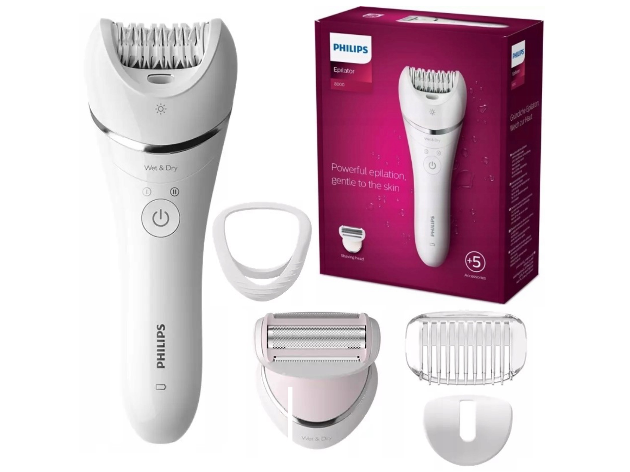 - Możliwość użycia na mokro i sucho: Komfort depilacji zarówno w wannie, jak i pod prysznicem.