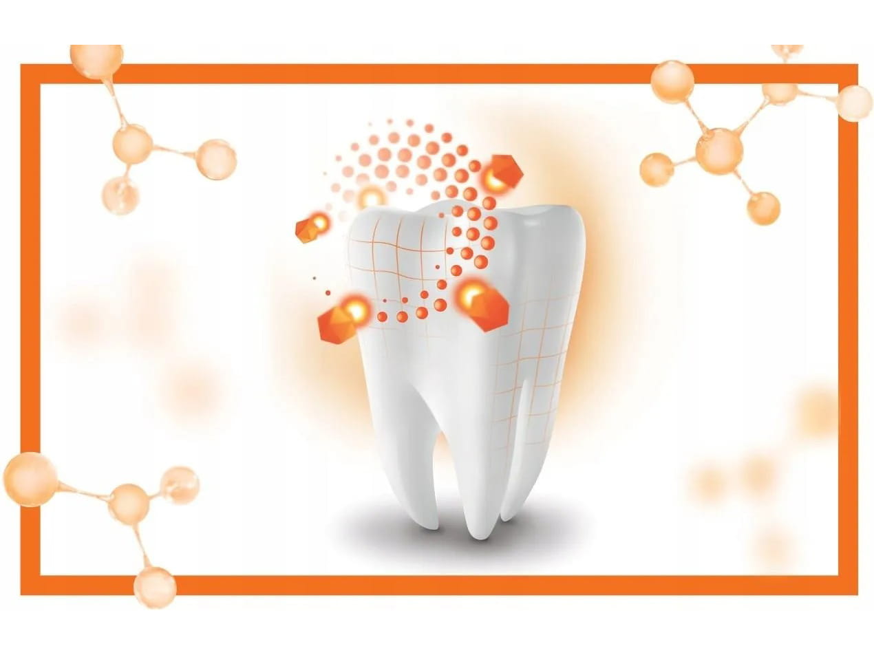 - Ochrona przed nadwrażliwością – formuła wypełnia ujścia kanalików zębinowych, zmniejszając ból przy spożywaniu zimnych i gorących pokarmów.