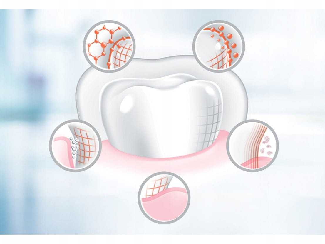 - Ochrona przed próchnicą – technologia fluorku cyny i fosforanu cynku skutecznie hamuje rozwój bakterii odpowiedzialnych za demineralizację szkliwa.