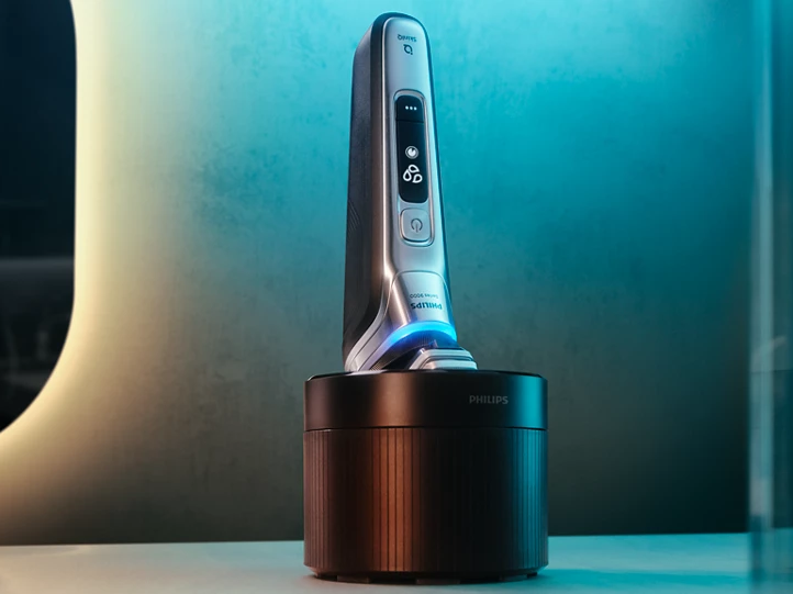 Innowacyjne rozwiązanie, które w pełni automatyzuje pielęgnację golarki. Stacja czyszcząca bez kabli dokładnie myje i smaruje głowice golące w zaledwie 1 minutę. Jest 10 razy bardziej skuteczna niż czyszczenie wodą. To najmniejsza na świecie stacja czyszcząca, którą można przechowywać w dowolnym miejscu, zape