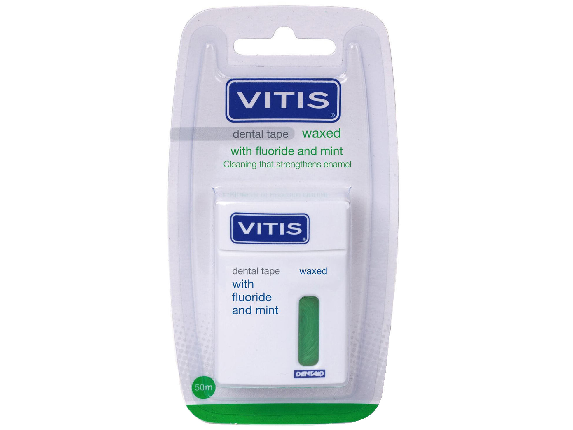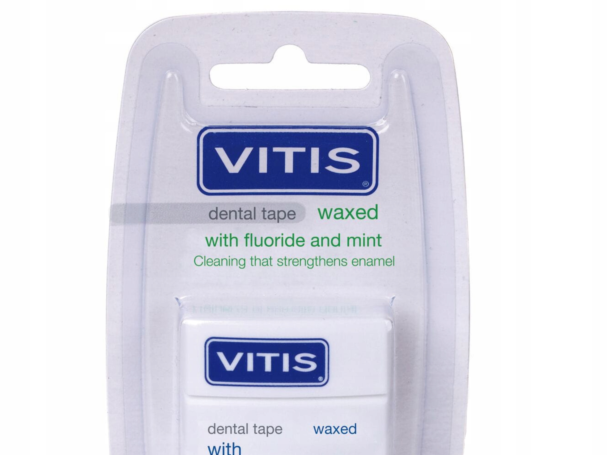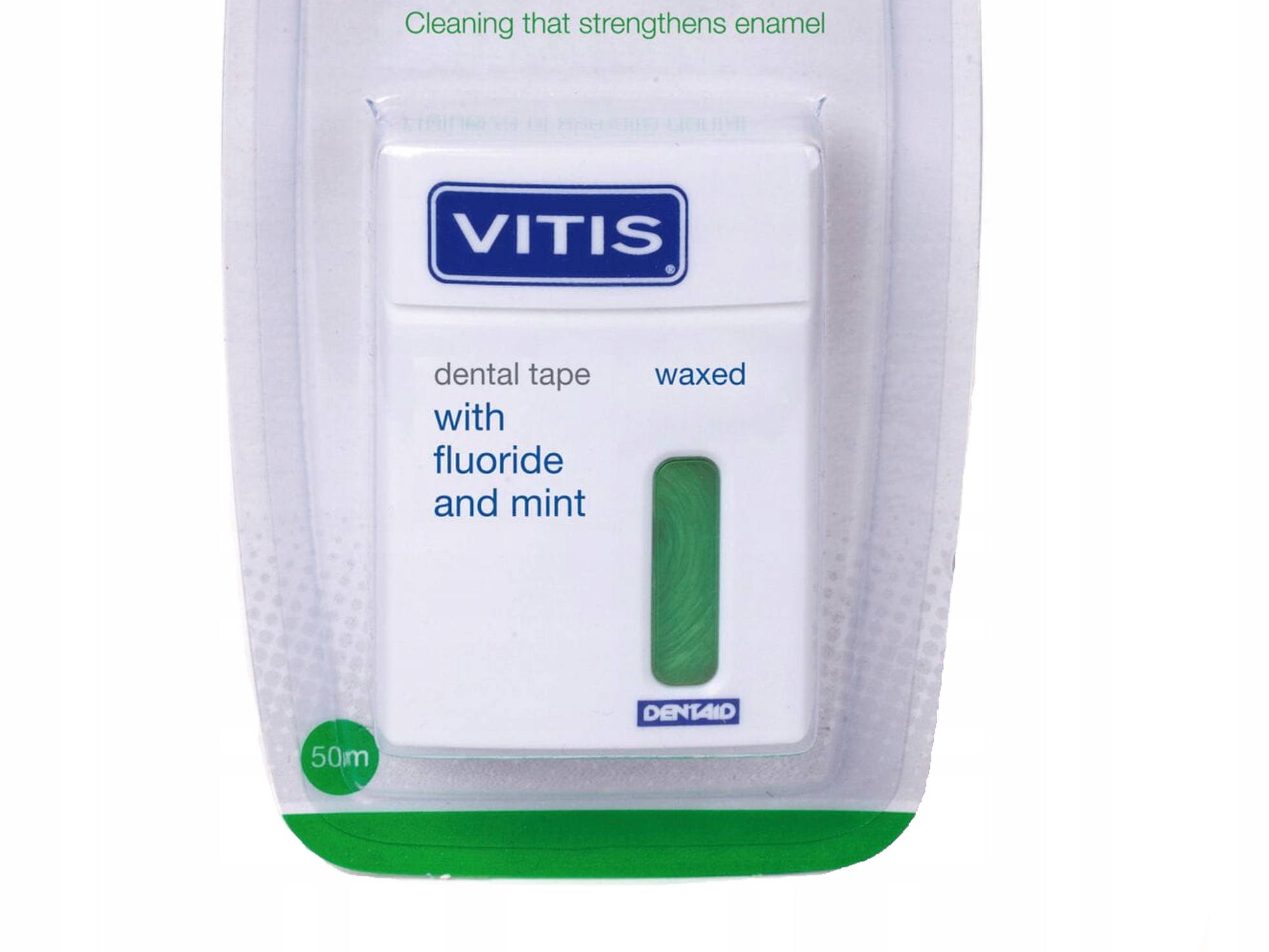 Vitis to taśma dentystyczna z fluorem i miętą, charakteryzująca się cienką i płaską konstrukcją, co zapewnia szeroką powierzchnię do skutecznego usuwania zanieczyszczeń międzyzębowych podczas czyszczenia zębów. Te nitki o cienkim i płaskim profilu zapewniają większą powierzchnię do rozciągania. Systematyczne używanie nici dentystycznej skutecznie ogranicza ilość płytki bakteryjnej gromadzącej się między zębami.