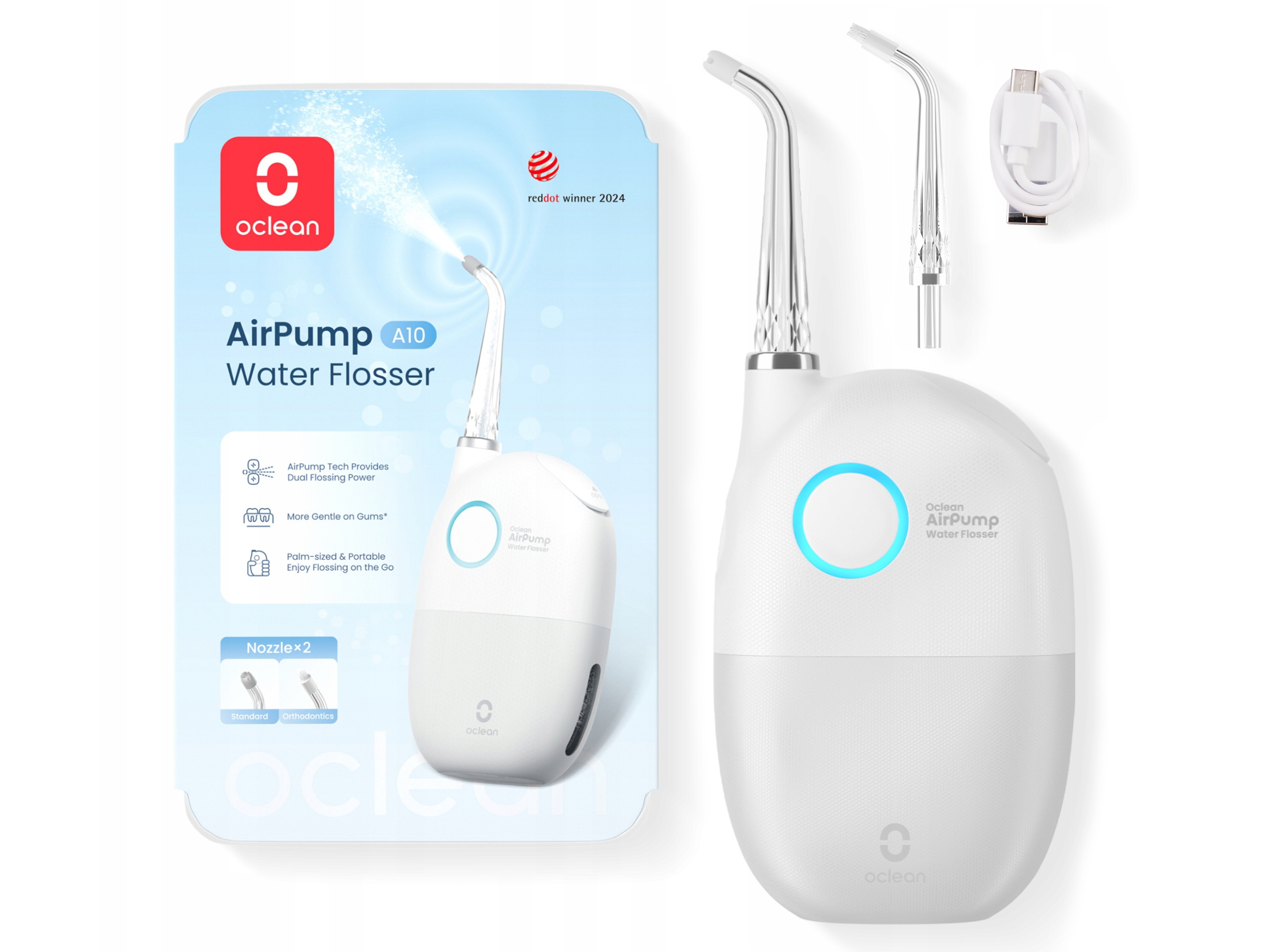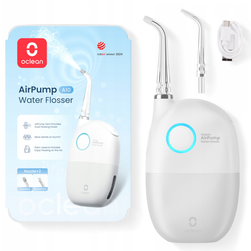 Oclean A10 to nowoczesne urządzenie do higieny jamy ustnej, które łączy elegancki, kompaktowy design z zaawansowaną technologią AirPump. Dzięki swojej wydajności i poręczności sprawdzi się zarówno w codziennej pielęgnacji, jak i w podróży. Irygator A10 wykorzystuje innowacyjną technologię mieszania sprężonego powietrza z wodą, generując strumień zawierający aż 98% powietrza. Ten precyzyjny strumień skutecznie usuwa resztki pokarmu z trudno dostępnych przestrzeni międzyzębowych i kieszonek przyzębnych, dbając o zdrowie Twojej jamy ustnej.