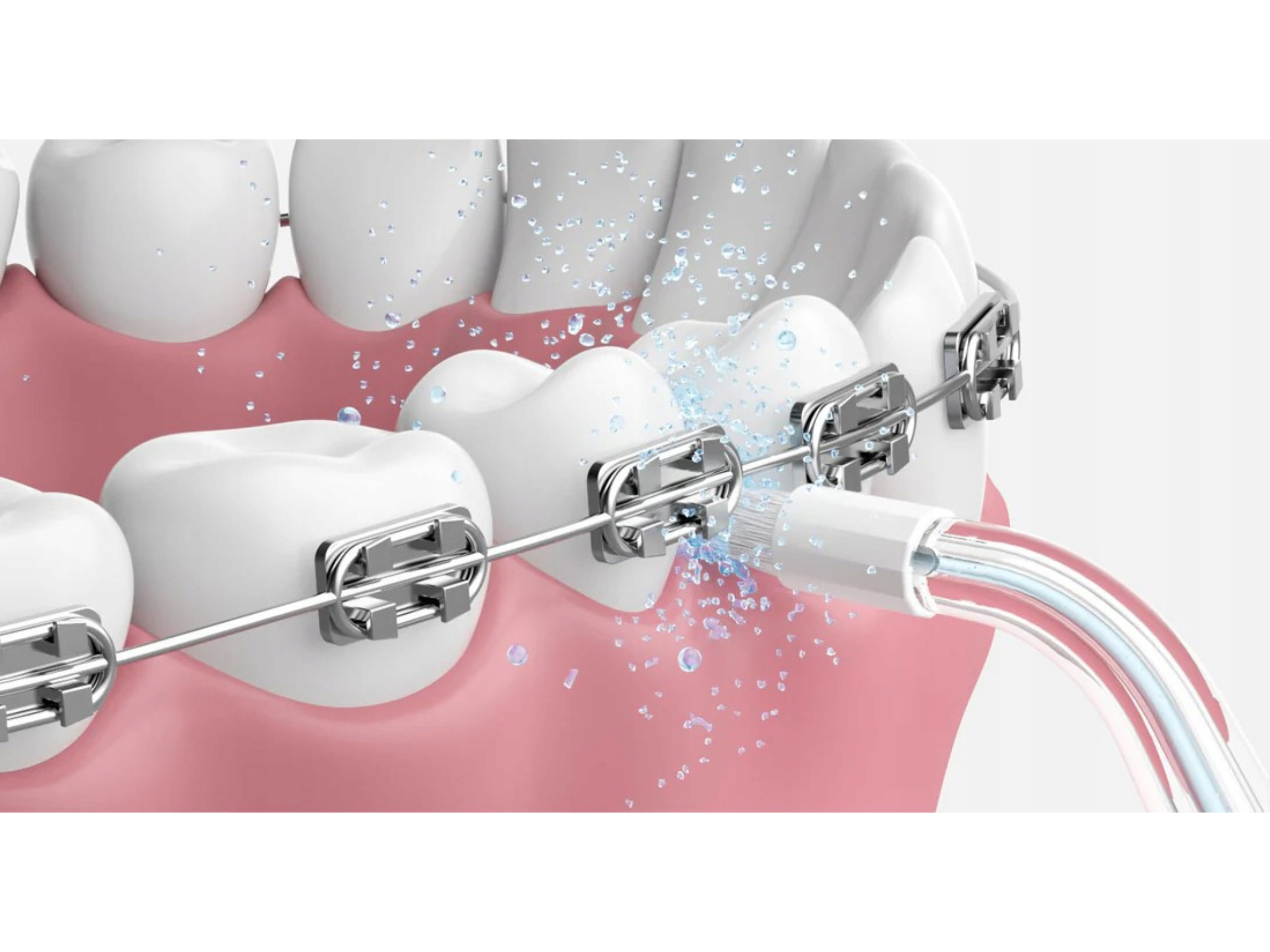 • Dwie wymienne dysze – Zestaw zawiera dyszę standardową do codziennego czyszczenia oraz ortodontyczną, zaprojektowaną specjalnie dla osób noszących aparat ortodontyczny.