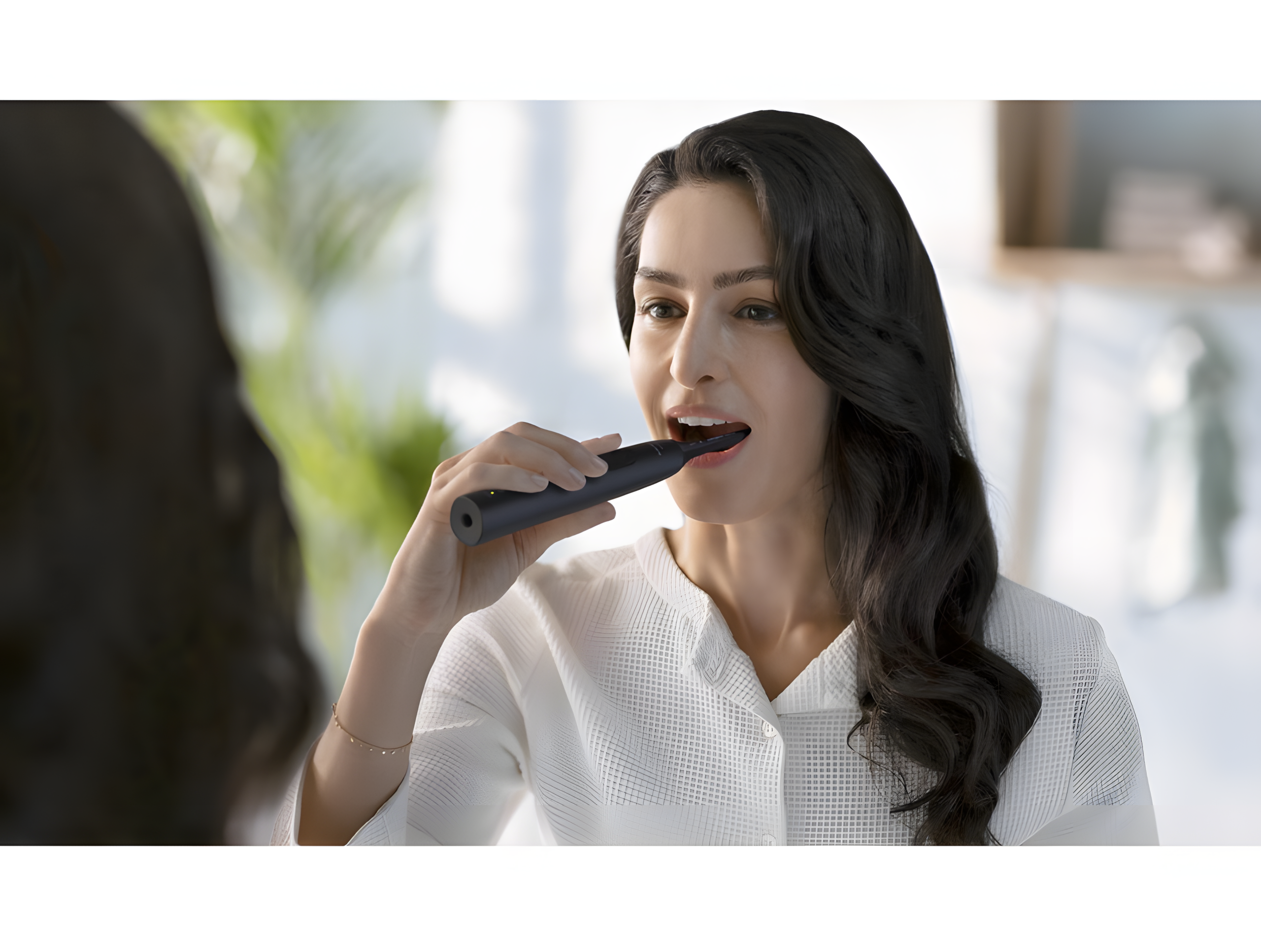 - Profesjonalny czujnik nacisku chroni Twoje zęby i dziąsła, sygnalizując, gdy szczoteczka jest przyciskana zbyt mocno. Jeśli to się zdarzy, szczoteczka zwolni swoje ruchy i przypomni Ci, abyś szczotkował zęby delikatniej.