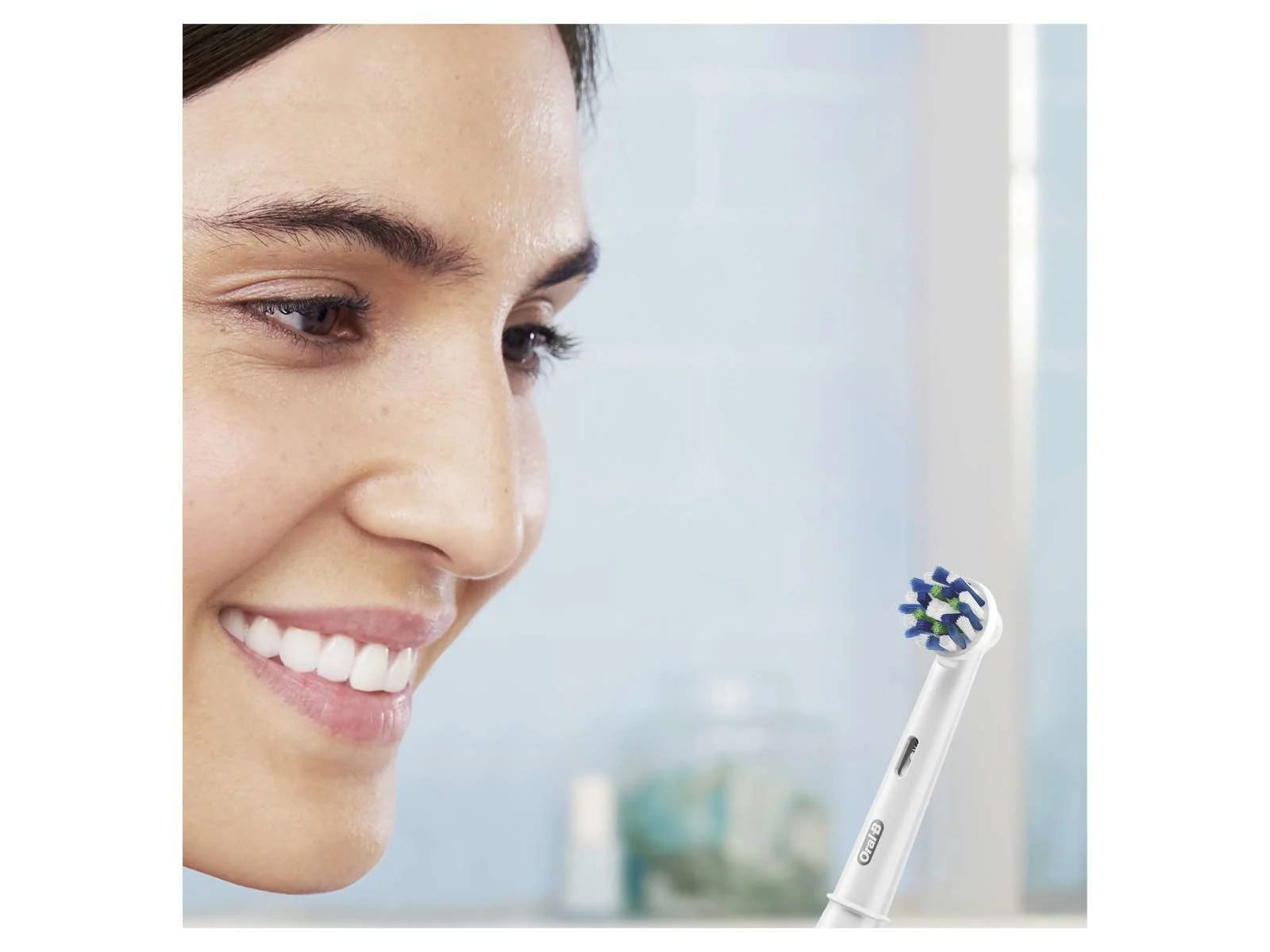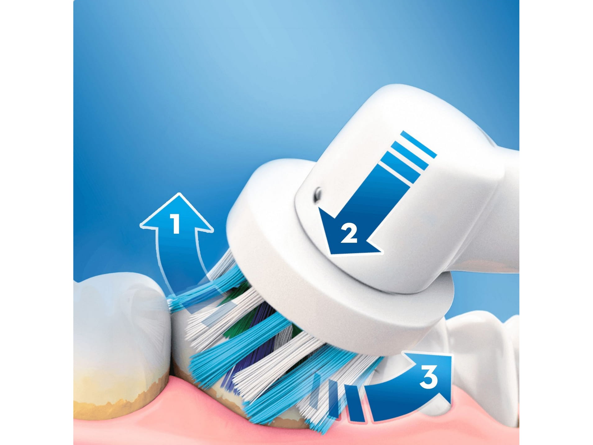 Dzięki połączeniu dwóch ruchów (oscylacyjnym i rotacyjnym) szczoteczka usuwa do 100% więcej płytki nazębnej w porównaniu do zwykłej szczoteczki manualnej.