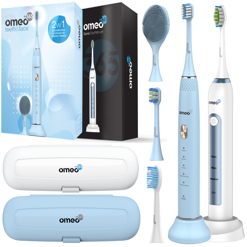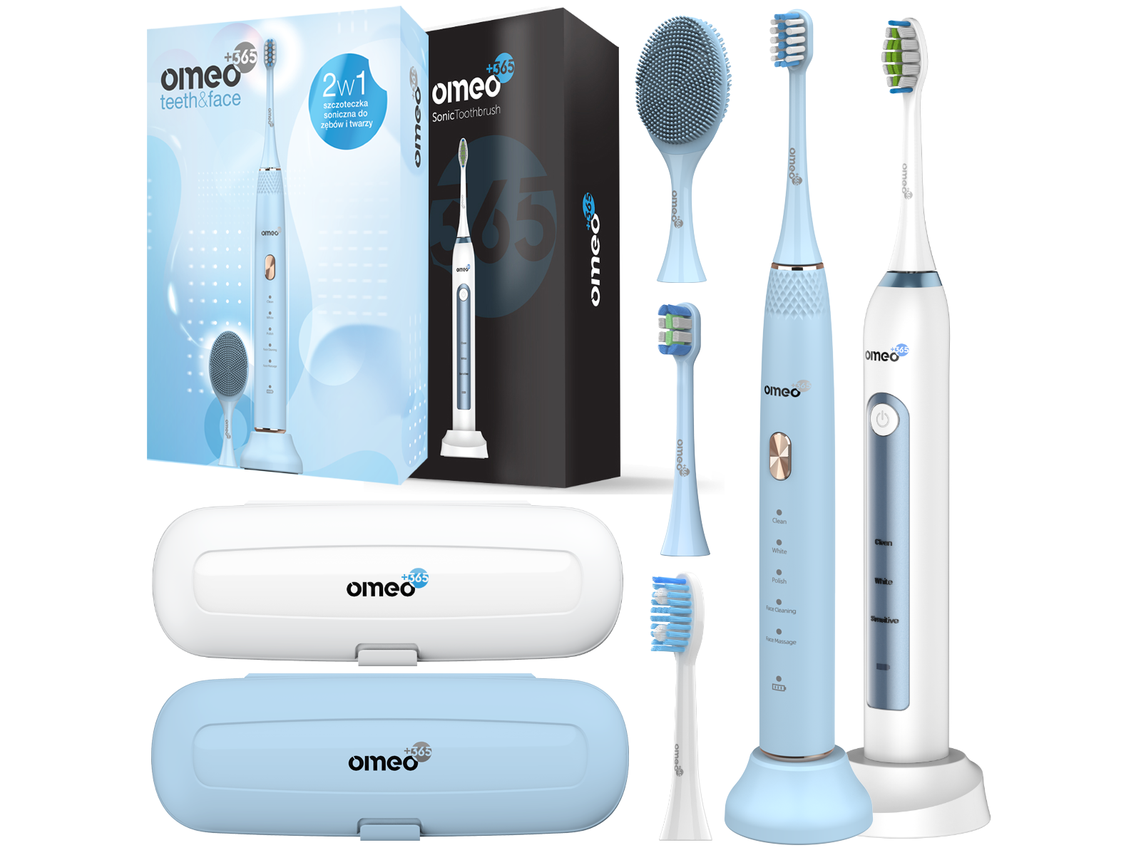 Szczoteczka Soniczna Do Zębów OMEO +365 White OV-1W + Teeth&Face Blue (T20-B)