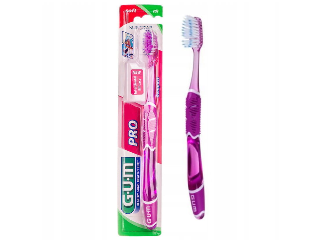 Szczoteczka ręczna Gum Pro Sensitive została starannie skonstruowana, aby efektywnie wspomagać pielęgnację delikatnych oraz wrażliwych zębów, obrzękniętych dziąseł. Gwarantuje niezwykle delikatne szczotkowanie, jednocześnie zapewniając doskonałą codzienną higienę jamy ustnej. Dzięki ergonomicznej rączce łatwo osiągniesz naturalne ustawienie szczoteczki, co przynosi najlepsze rezultaty podczas szczotkowania.