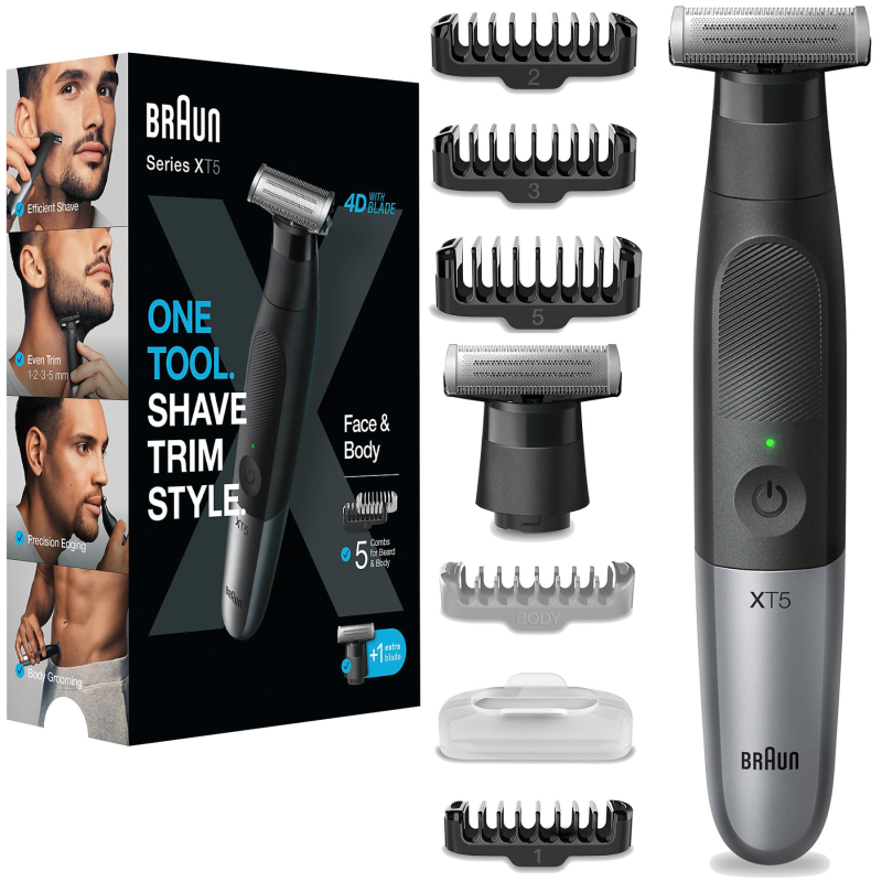 Trymer Braun Series X XT5110 to wielofunkcyjne urządzenie, które umożliwia precyzyjne i komfortowe przycinanie włosów zarówno na twarzy, jak i na całym ciele. Dzięki zaawansowanej technologii oraz ergonomicznemu designowi sprawdzi się w codziennej pielęgnacji, zapewniając łatwość i wygodę użytkowania.